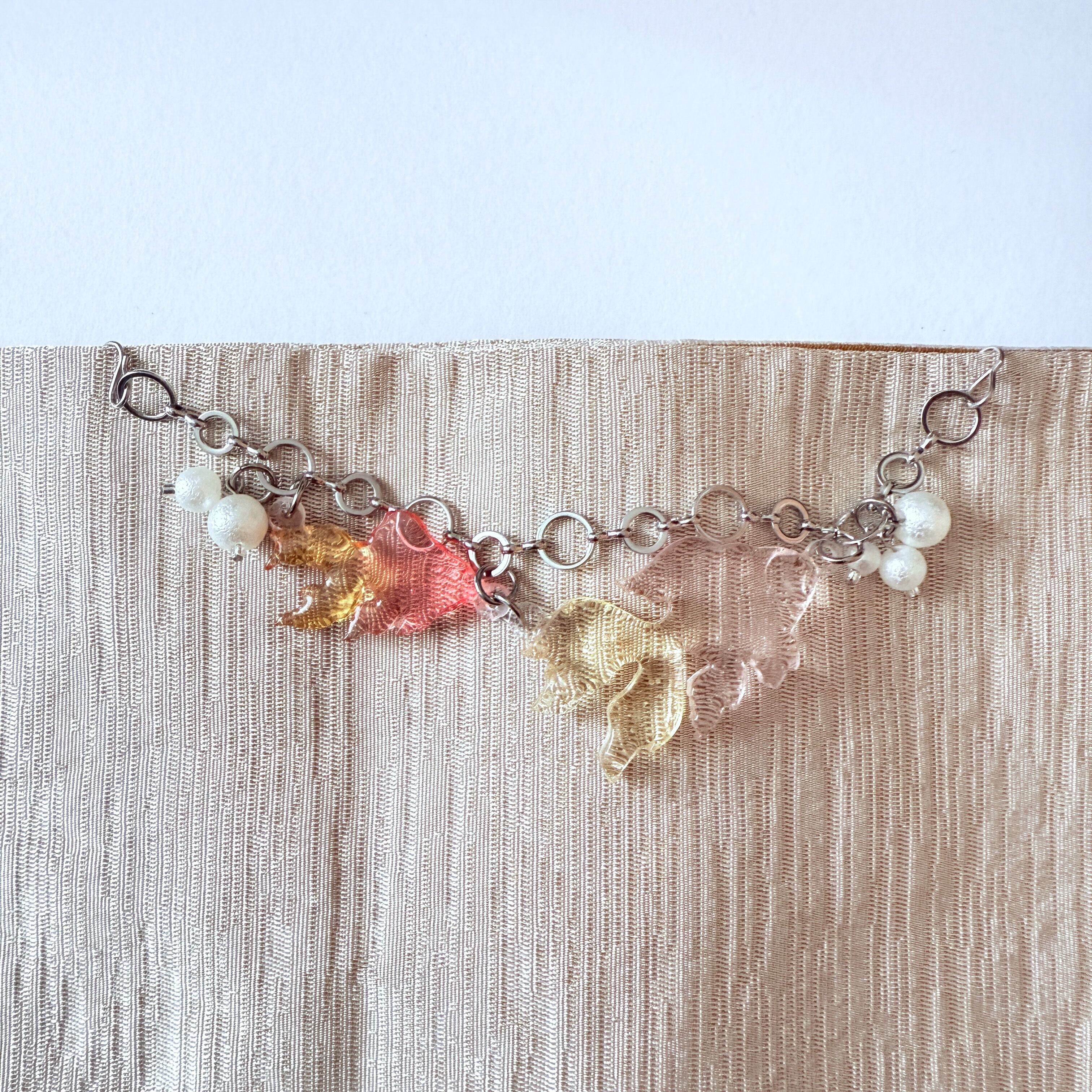 コットンパール風シワ加工のパールビーズで水泡をイメージしています。