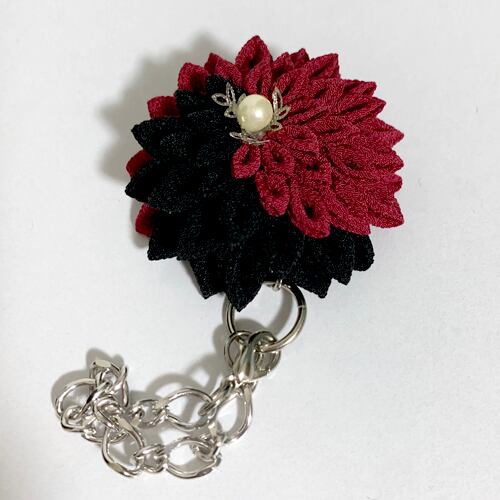 バイカラーで半くすの剣菊をバッグチャームにしました。