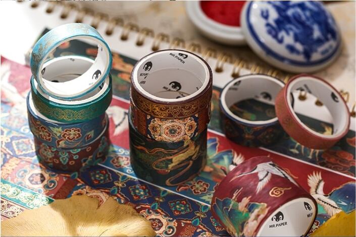 このセットには、錦呈風華という美しい名前がつけられた、満点星辰シリーズのマスキングテープが10本セットになっています。どの柄も、星空や風景など美しいモチーフが施されており、一本一本がファンタジーのような世界観とともに、あなたを包み込みます。