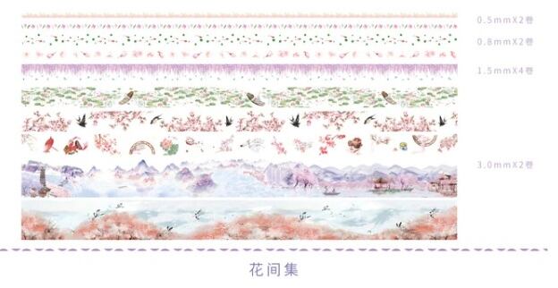 花間集、星海、火烈鳥の3つのデザインが各2mずつ計8本セットになっています。