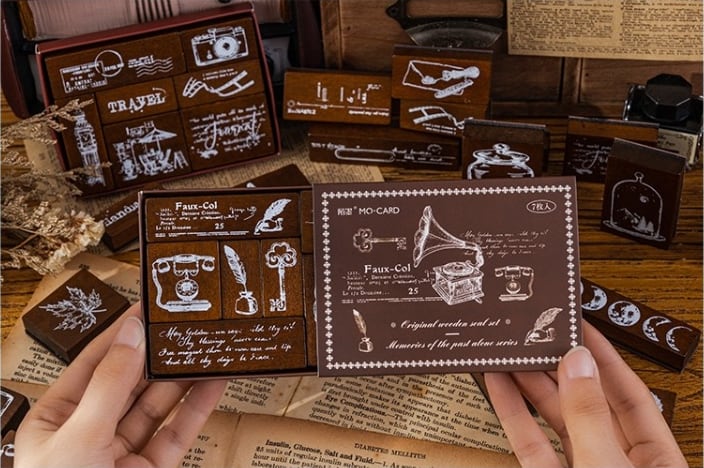 昔日浮生という名のレトロなアイテムをモチーフにした、7個セットのラバースタンプが登場しました。味わい深い風合いが魅力のアイテムです。