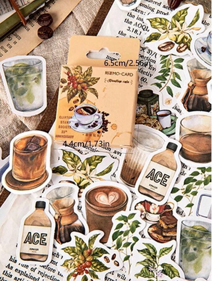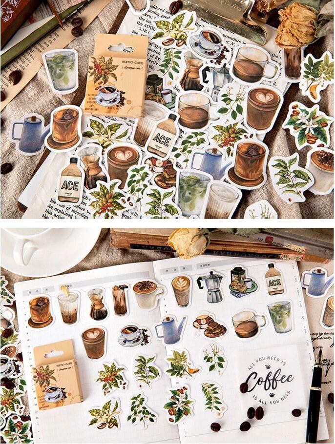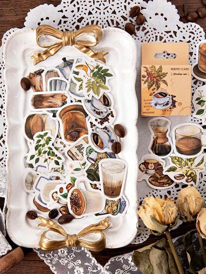46ピースの中からお気に入りのシールを選んで、手帳やノート、カレンダーなど、お好きな場所に貼ってみてください。カフェ気分が広がり、癒しのひとときが待っています。