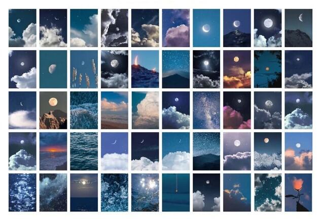 50枚のページには、月や星、夜の風景をモチーフにしたデザインがたっぷり。