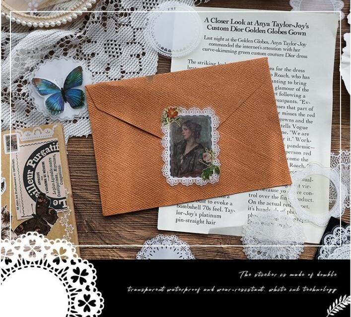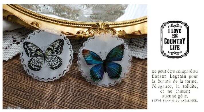 白いレース柄が特徴のこのセットは木製アイテムや手帳、ノート、スマホケースなど様々なものに貼ることができます。