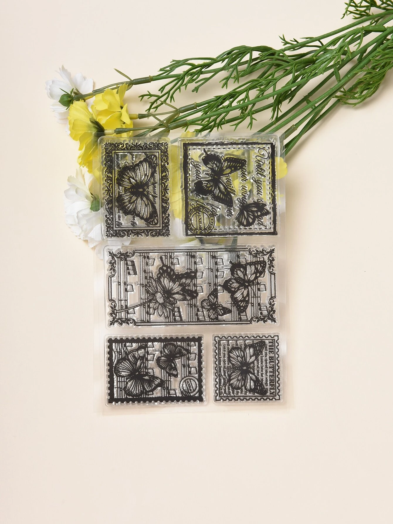 バタフライパターンのクリアスタンプで、手作りのアイテムを仕上げてみませんか。