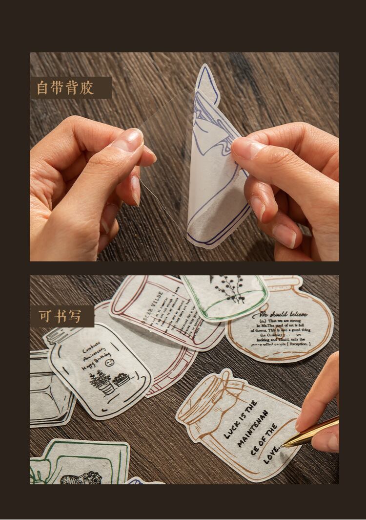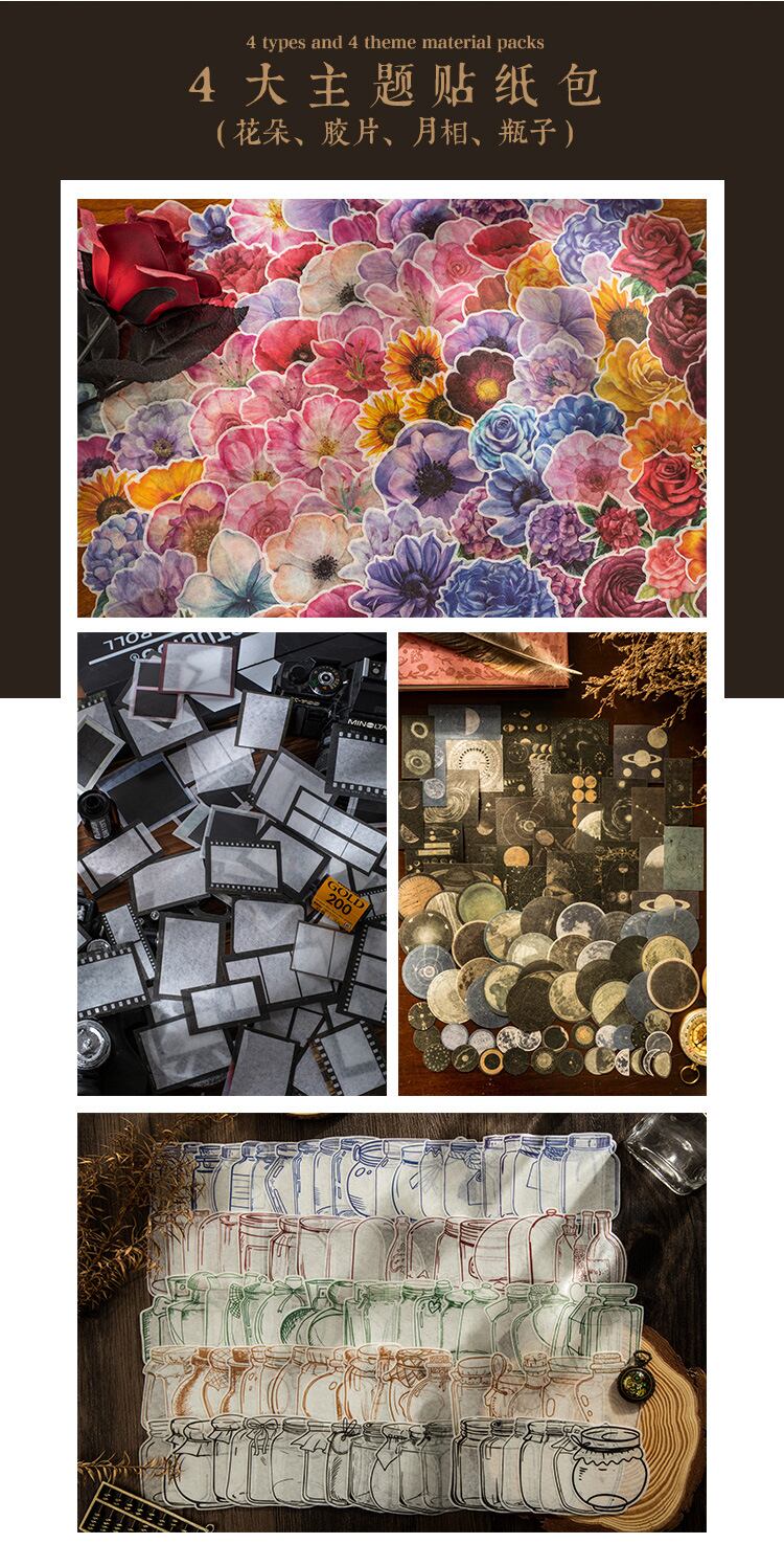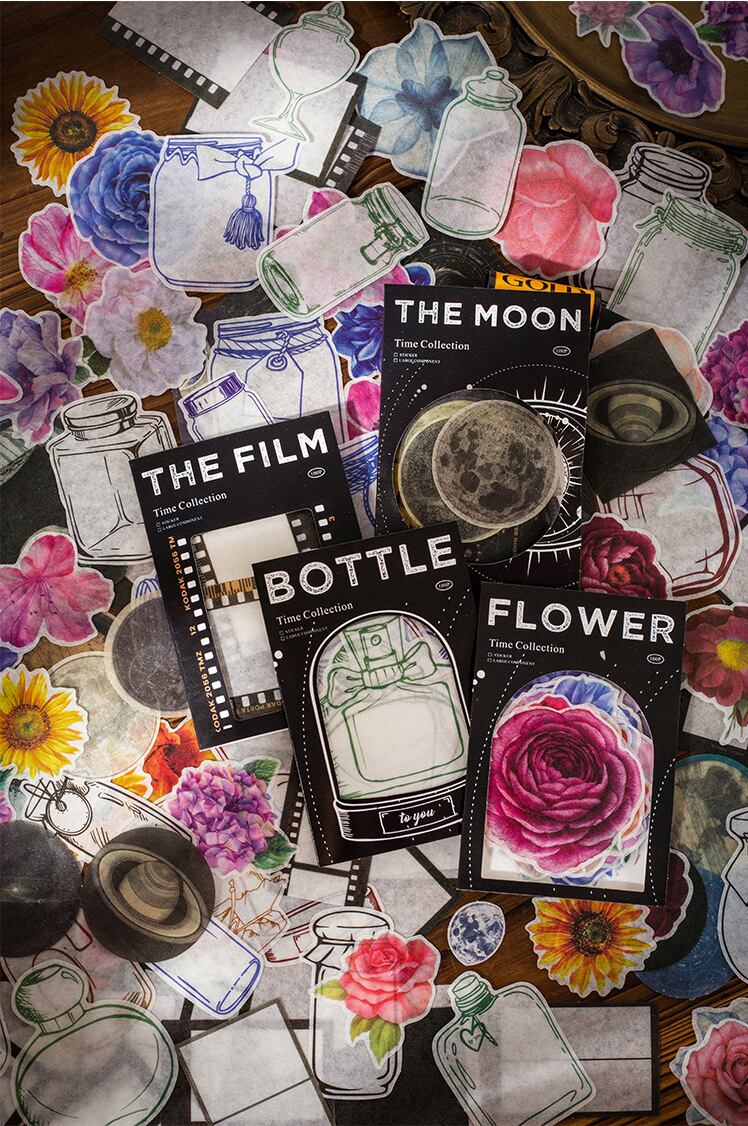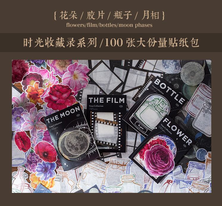 "THE MOON" "BOTTLE" "THE FILM" "FLOWER"のステッカーはマスキングテープタイプで100枚入です。