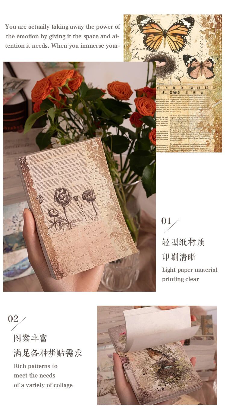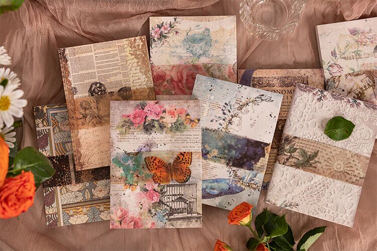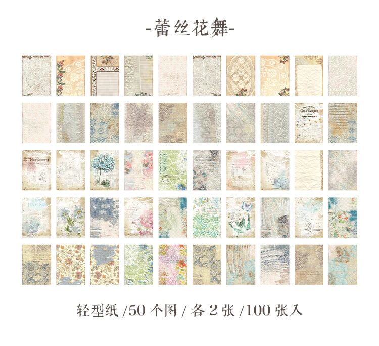 レトロな「咲き誇る花」「手書きの手紙」「レースのダンス」という素材紙本はいずれも創作意欲を湧き立てるデザイン。