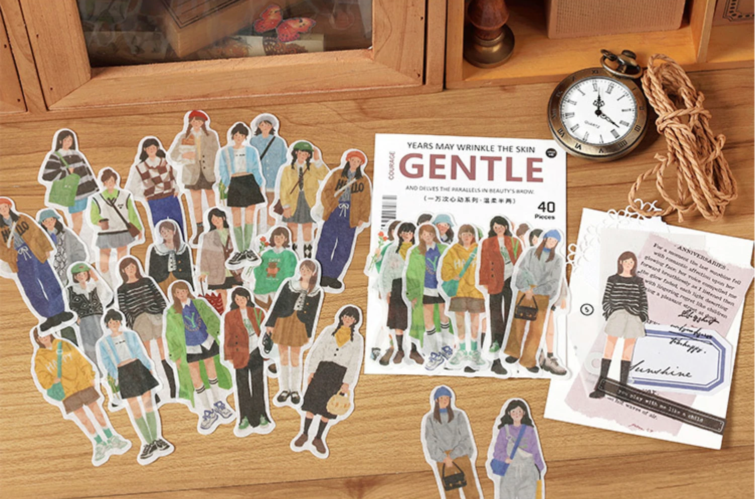 手帳デコやアイデアノートにぴったりな40枚のステッカーが入っています。