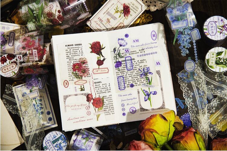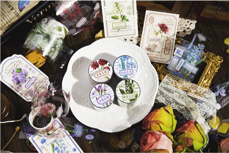 時光花園シリーズのPETテープは、ヴィンテージフラワーをモチーフにしたデザインが魅力です。