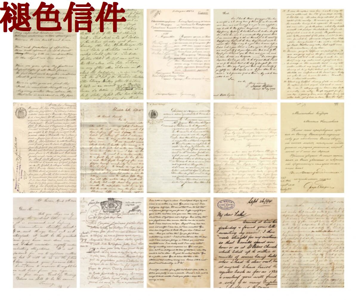 手紙や楽譜、レトロな新聞など数々のデザインが30枚セットになっています。