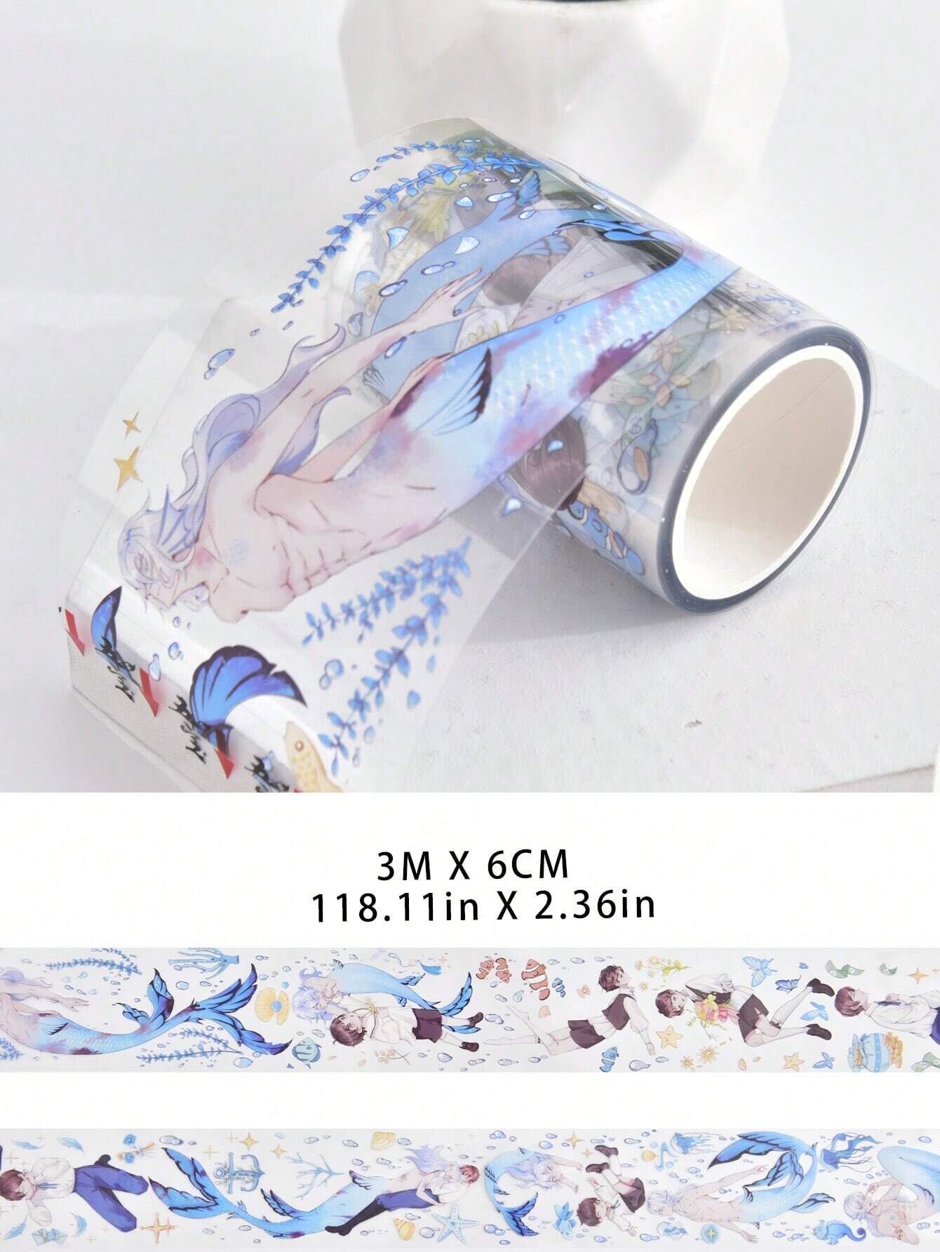 マーメイドパターンが目を引く、DIYやジャーナルブックの装飾に最適なPETテープです。