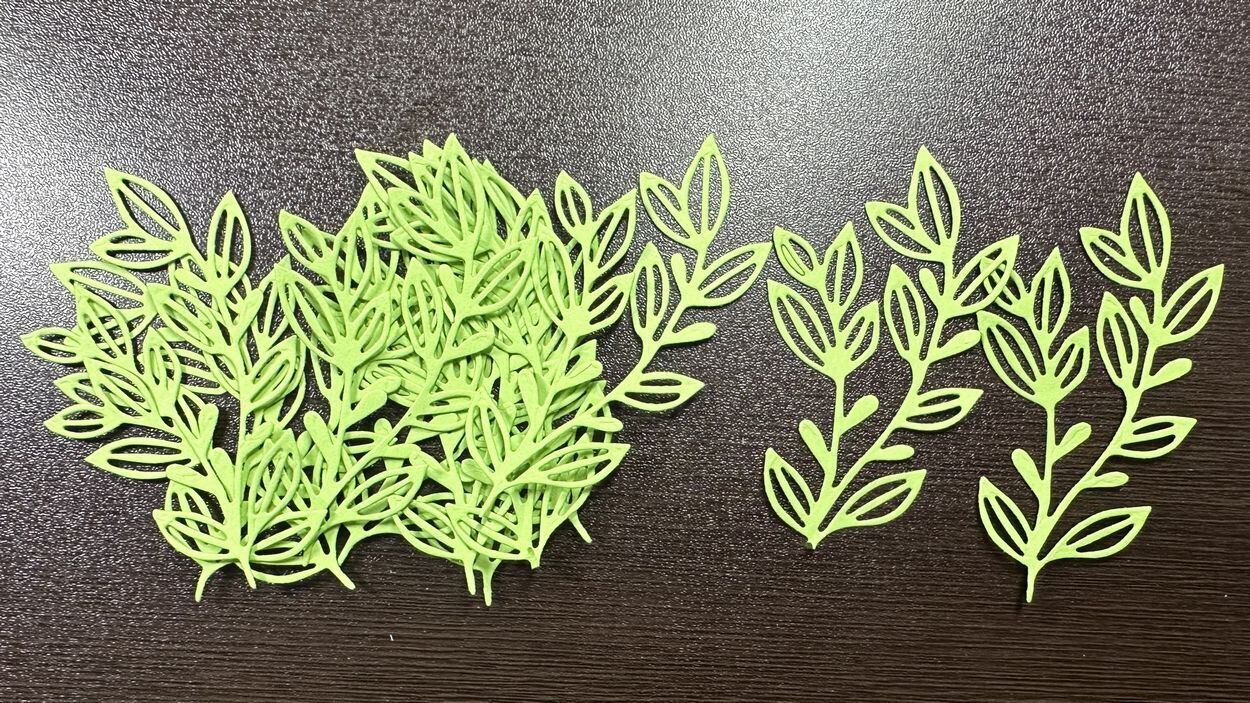 カッティングダイという金型で抜いた葉のモチーフセットです。