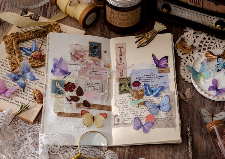 蝶の美しさをモチーフにしたヴィンテージなデザインのPETステッカーセットです。