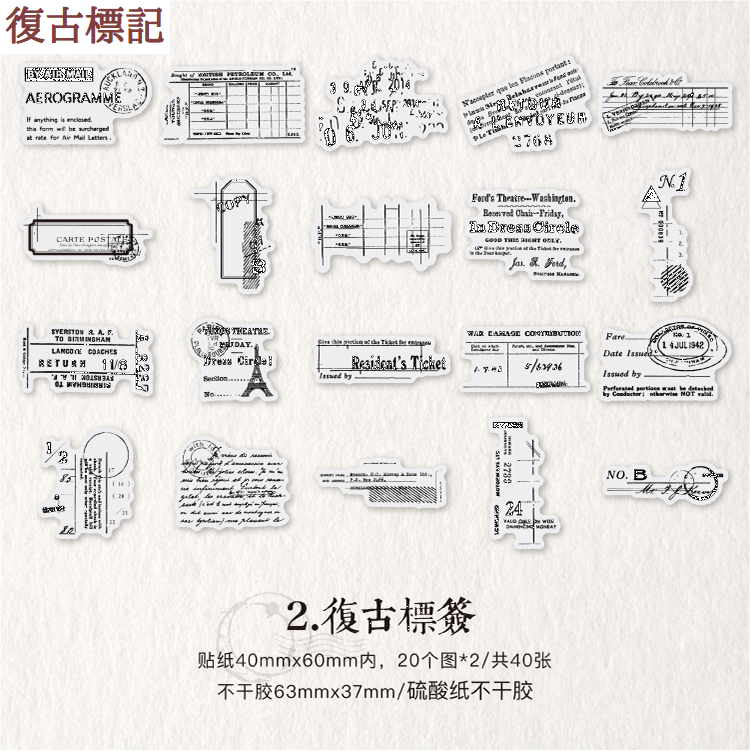 レトロな雰囲気漂うステッカーセットは、装飾の材料、スクラップブッキングやジャーナル、コラージュのステッカーなど幅広い用途に活躍してくれます。