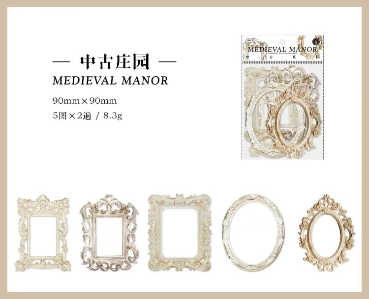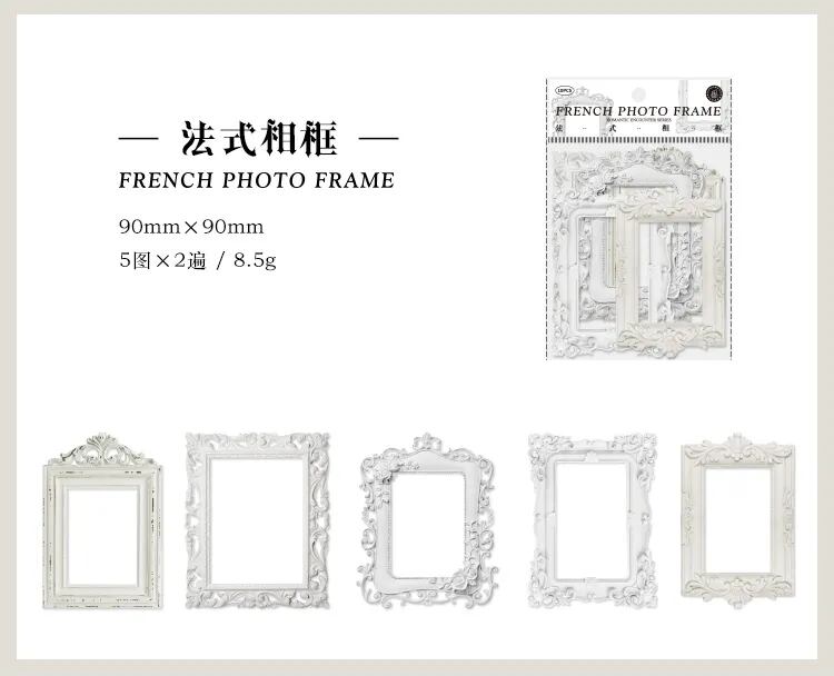 正方形または円形のフレームデザインが10枚セットになっているので、思いのままにアレンジすることができます。
