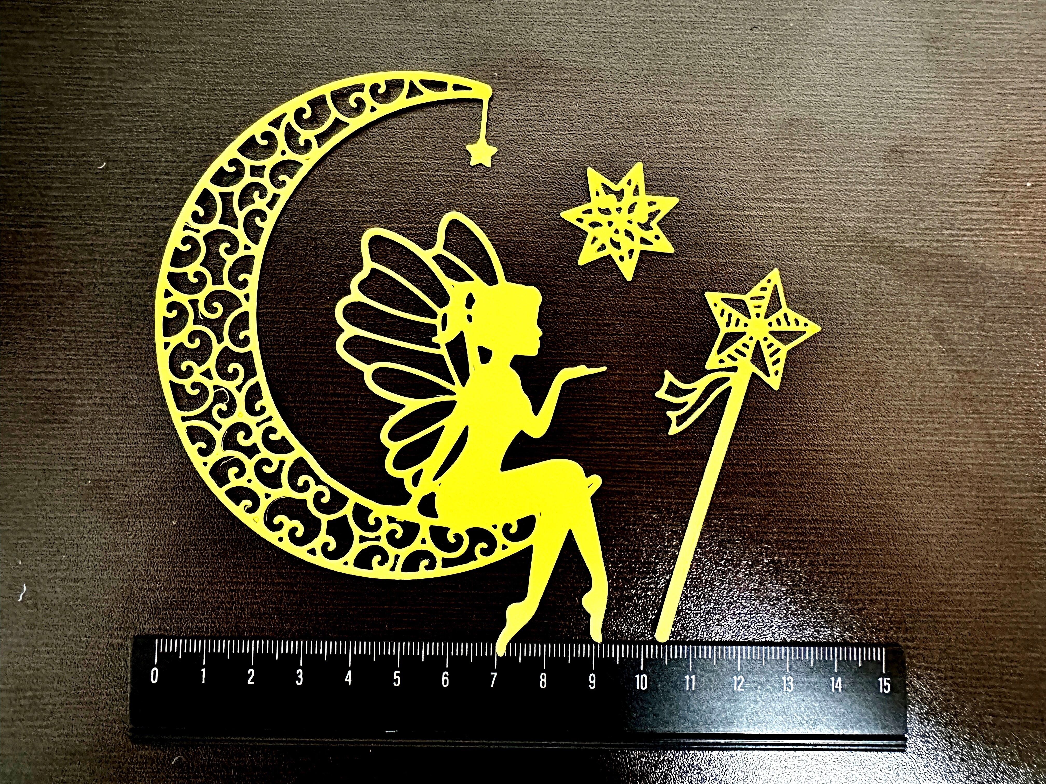 繊細なデザインの月の上に座る妖精と星と杖がセットになっています。