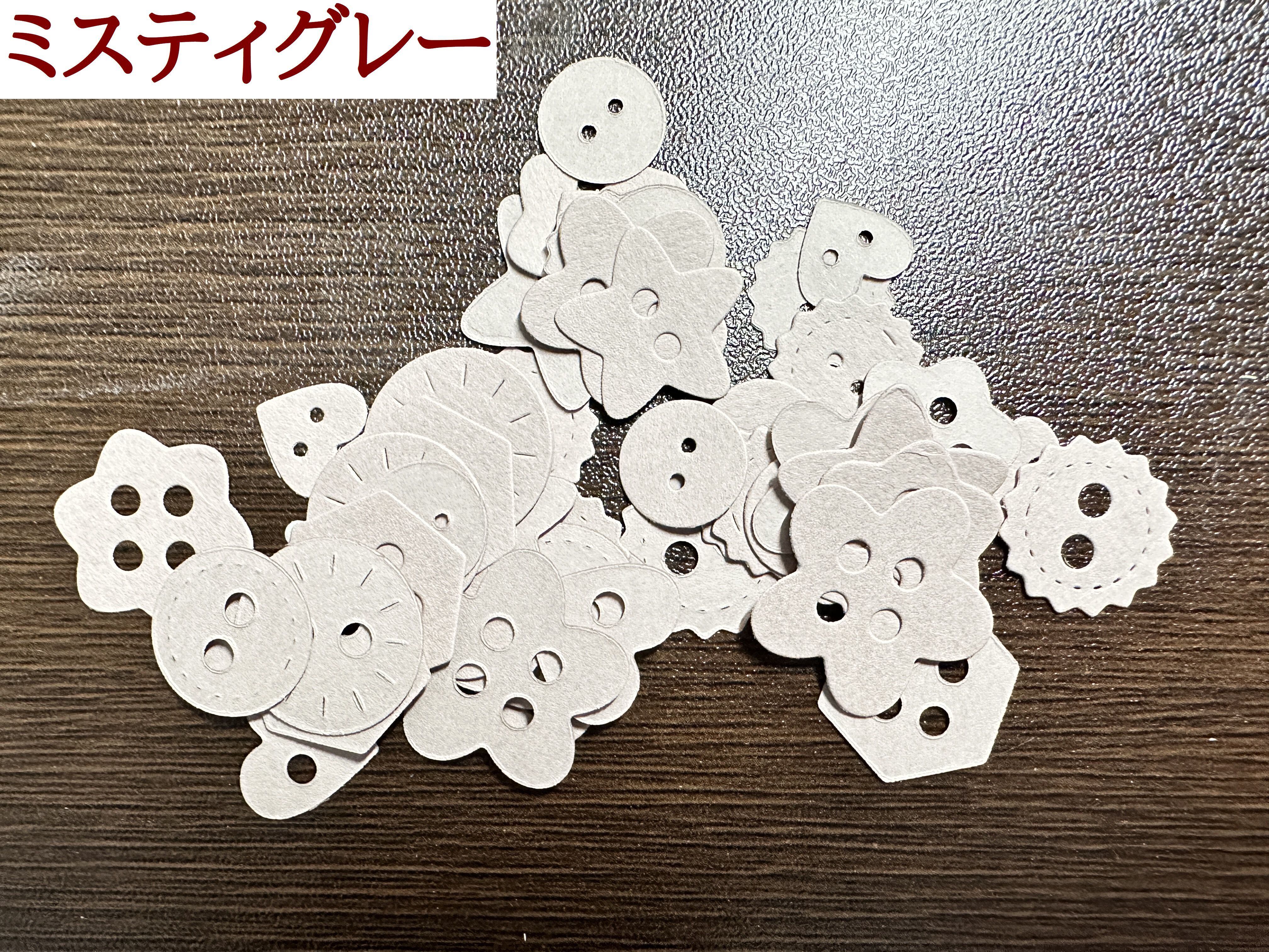 カッティングダイという金型で抜いた様々な形とサイズをしたボタンが入っています。