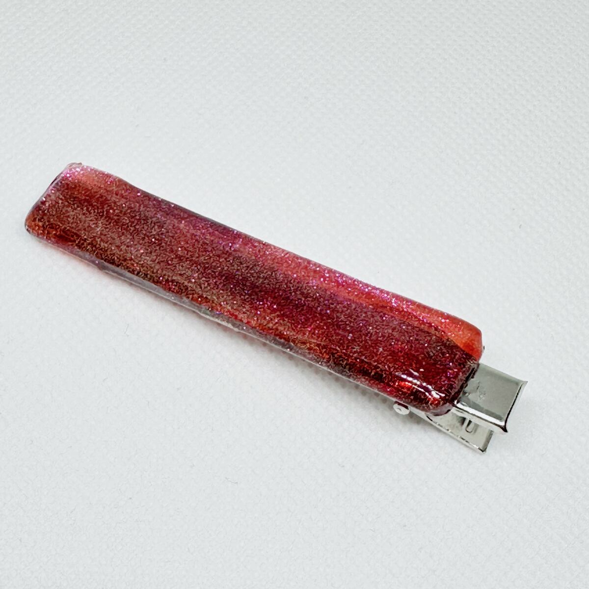 見る角度によって色が変わる面白いヘアクリップになりました。