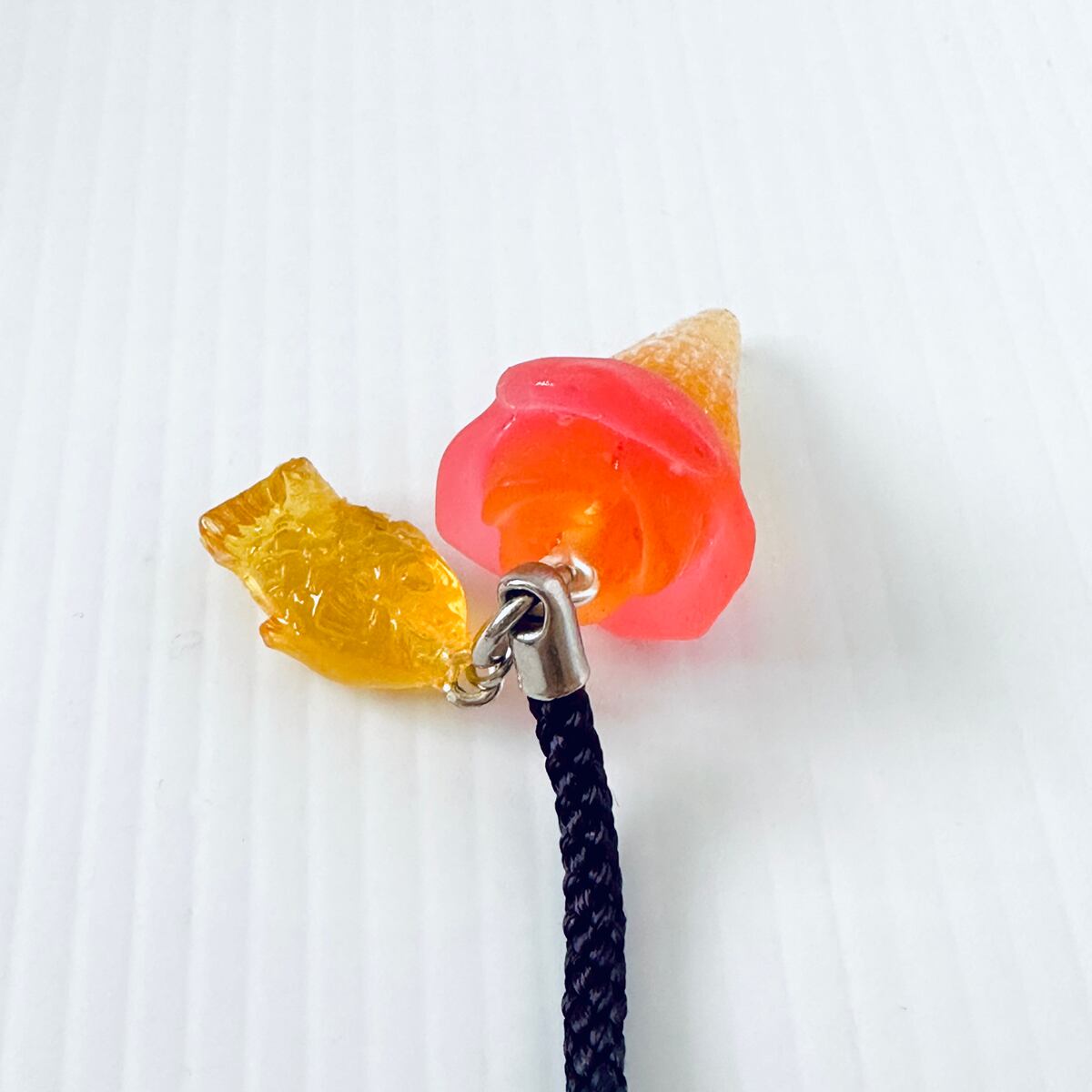帯飾り・根付ストラップ ババヘラアイスとたい焼き(いちごとプレーン)