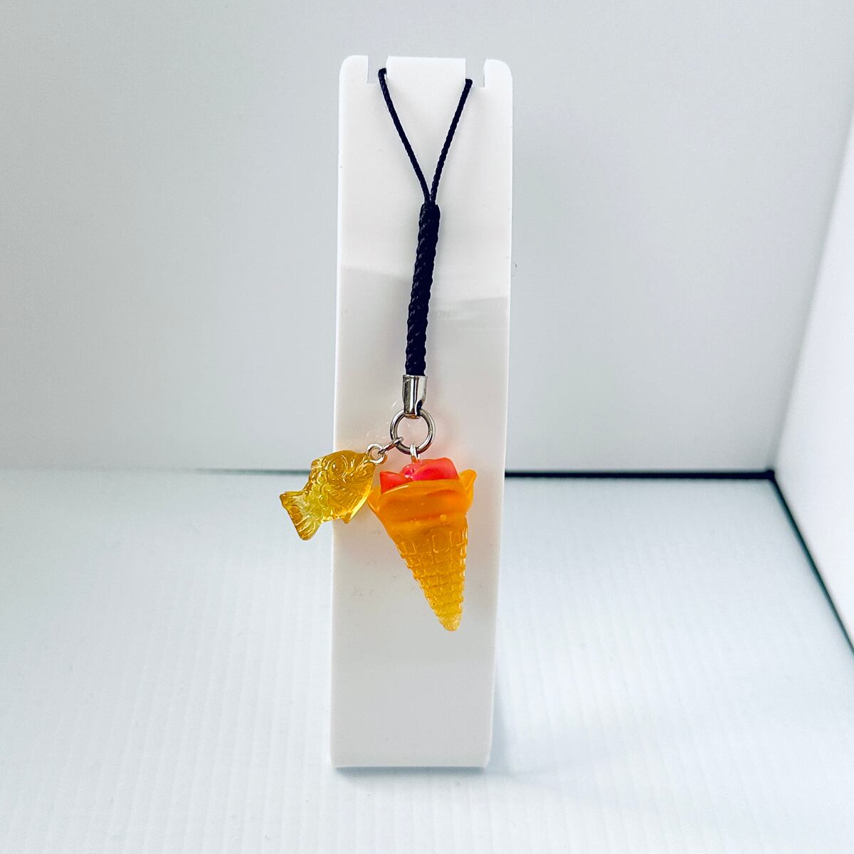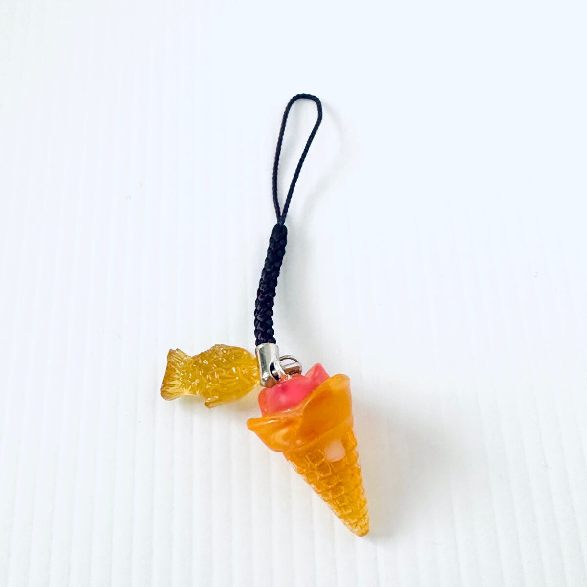 帯飾り・根付ストラップ ババヘラアイスとたい焼き(レモンとプレーン)